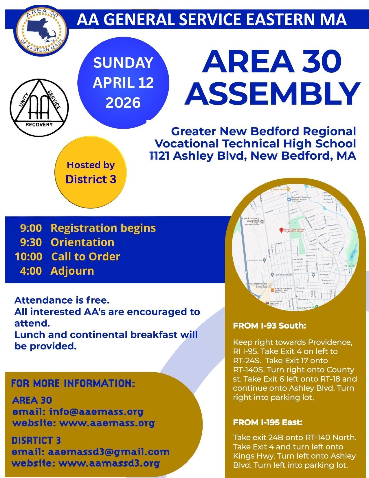 Area 30 Assembly, hosted by District 3 Sunday April 12. ... (more)