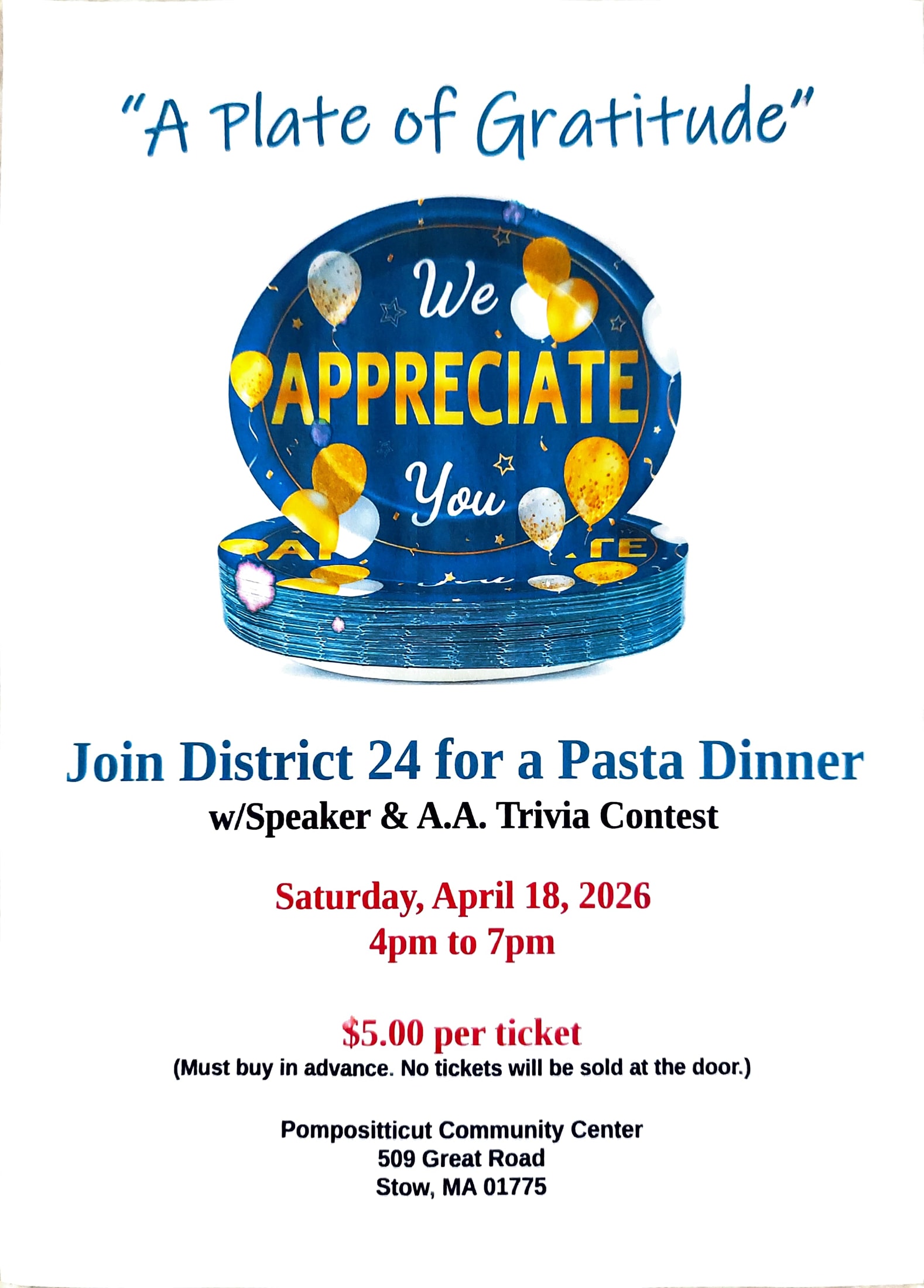 Pompositticut Center Route 117 Stow. Hosted by District 24, Tix $5 in advance. See flyer. ... (more)