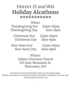 Alcathon slots available, please submit request by November 1 to alcathon@aaworcester.org